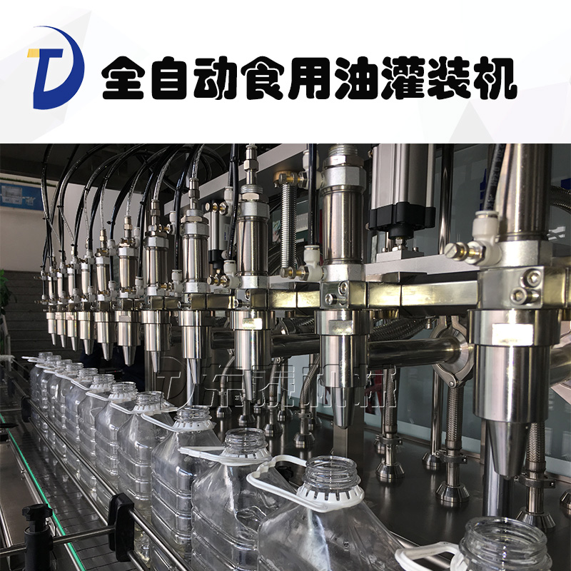 東泰機(jī)械這款食用油灌裝機(jī)采用了流量計式計量灌裝原理,適用于各種規(guī)格(1-5升)的南瓜籽油、榛子油、牡丹籽油、芝麻油、山茶油、亞麻籽油、棉籽油、橄欖油、大豆油、玉米油、菜籽油等食用油灌裝。
