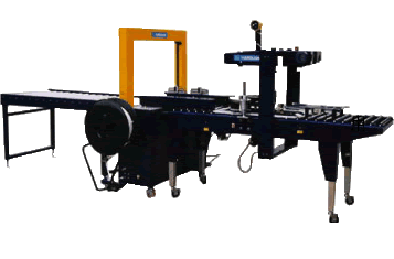 該打包機(jī)自動封箱,自動捆扎,光電感應(yīng),精確無誤,自動輸送,自動轉(zhuǎn)向,可調(diào)節(jié)打包距離。